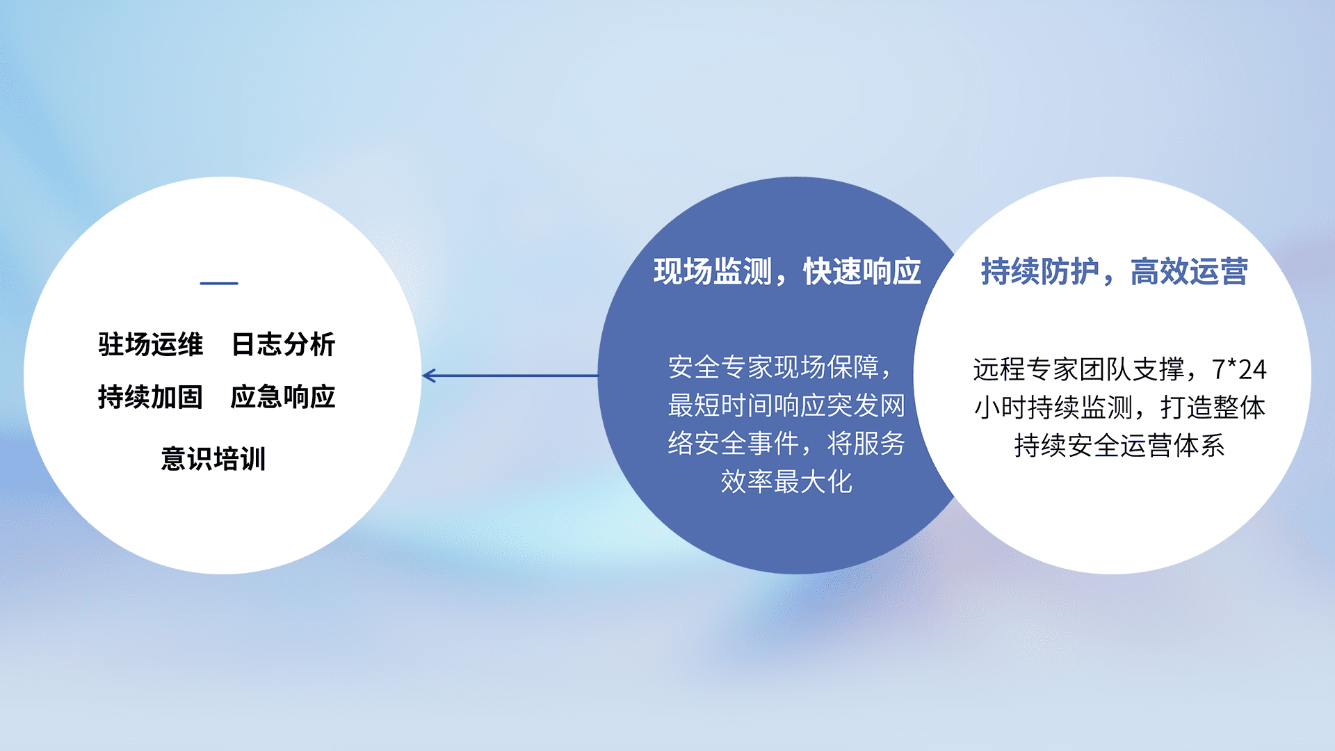 针对客户行业特性,,,提供专属的一站式安全管理服务,,帮助客户全面感知网络空间威胁,,通过安全专家的线上、、线下防护支持,,,,实现风险闭环,,将安全保障常态化,,,为客户打造常态化安全运维运营服务。。。